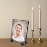 Cette ardoise, façonnée à partir de pierres naturelles, offre un souvenir unique qui se distingue des cadres photos traditionnels. Elle est disponible avec une ou deux photographies.